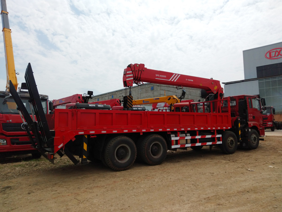 陕汽德龙新M3000驾驶室前四后八上装三一16吨直臂式吊机